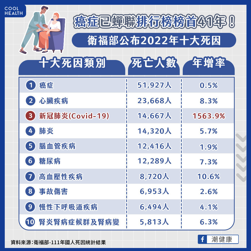 聯安診所健康管理中心主任洪育忠醫師表示,其實上述幾種疾病可以透過早期篩檢,及早查出病灶。其中癌症受到基因、器官退化、環境因素、感染(如B肝病毒)、飲食習慣、身體慢性發炎等影響;也正因為成因眾多,癌症發生比例始終居高不下。肺癌、肝癌更已連續43年位居國人十大癌症死因前2名。