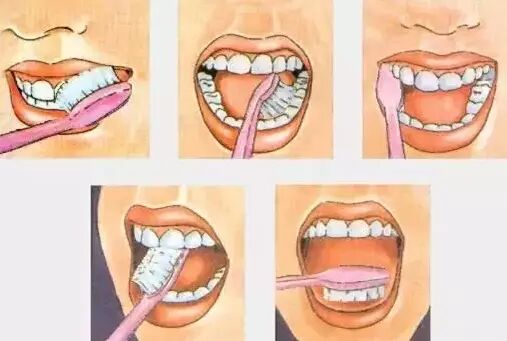 ② 刷牙的正確方法:牙刷傾斜45度,牙刷一半放在牙齒上,一半放在牙齦上原位小幅顫動。