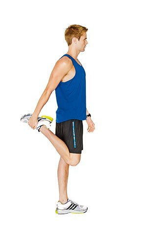 (站立時伸展,可以加強股四頭肌、強化膝蓋)